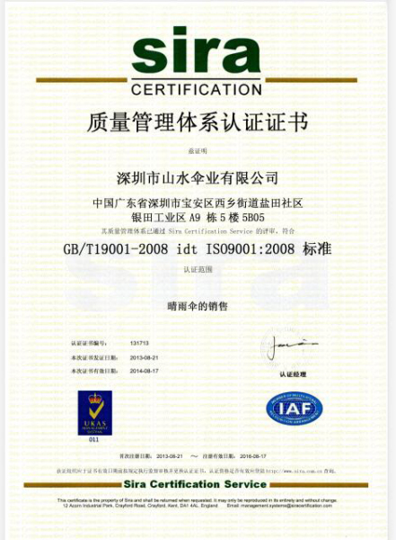 深圳市山水伞业有限公司是雨伞、太阳伞、帐篷、围裙、无纺布购物袋等促销礼品专业生产商,公司产品规格齐全、款式新颖、做工考究、品质优良。目前已涉及太阳伞、广告伞、沙滩伞、钓鱼伞、庭院伞、帐篷、 2- 5 折伞、童伞、高儿夫球伞、晴雨礼品伞等上百多种。主要销往美国、欧洲、日本、澳洲、东南亚等世界各地以及国内各省市! 深圳市山水伞业有限公司崇尚“诚实,务实,品实”的经营理念,’产品即是人品”的品质标准,致力于专业设计,生产,销售各式各样的雨伞,为客户提供专业的设计,高效的服务,高品质的产品,以客户满意为服务准则。 深圳市山水伞业有限公司成立以来以出色的服务和产品质量赢得客户的肯定。光荣已成过去,梦想还在延续,展望明天,山水人期待与您握手! |